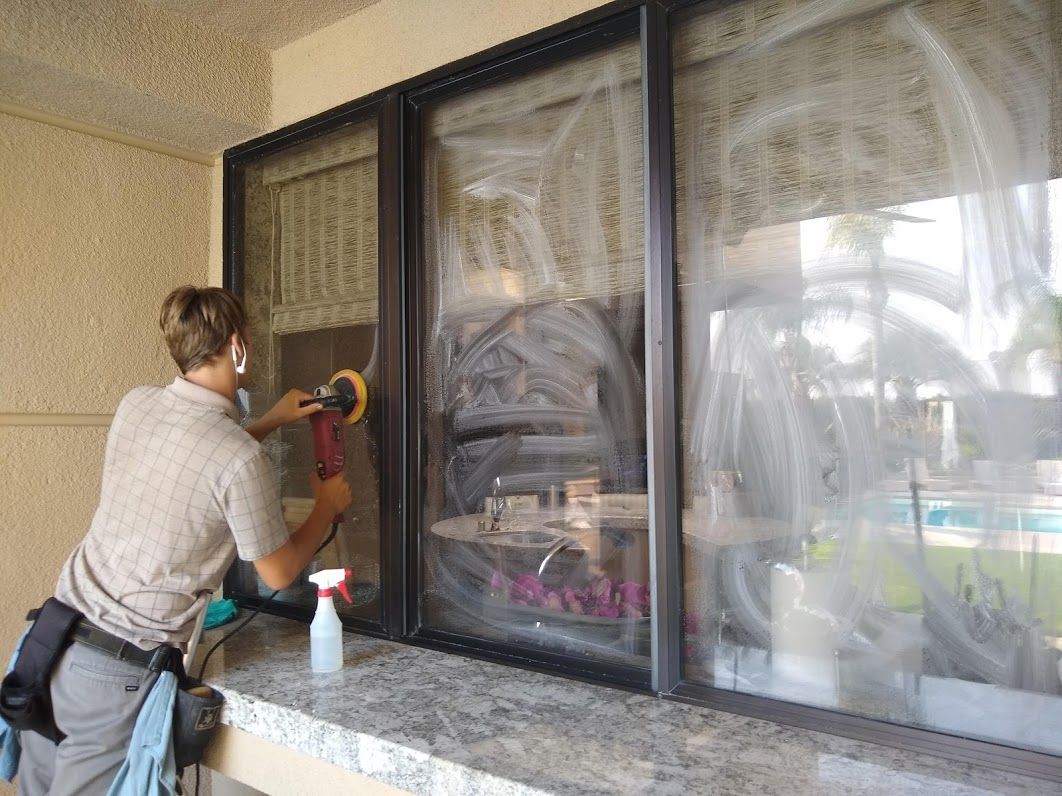 The process includes buffing and rinsing to remove any residue from the treatment solution. Severe etching that has permanently damaged the glass may not be fully reversible, but most stains respond well to the treatment. The service does not include glass replacement or repair of cracks, chips, or seal failures.